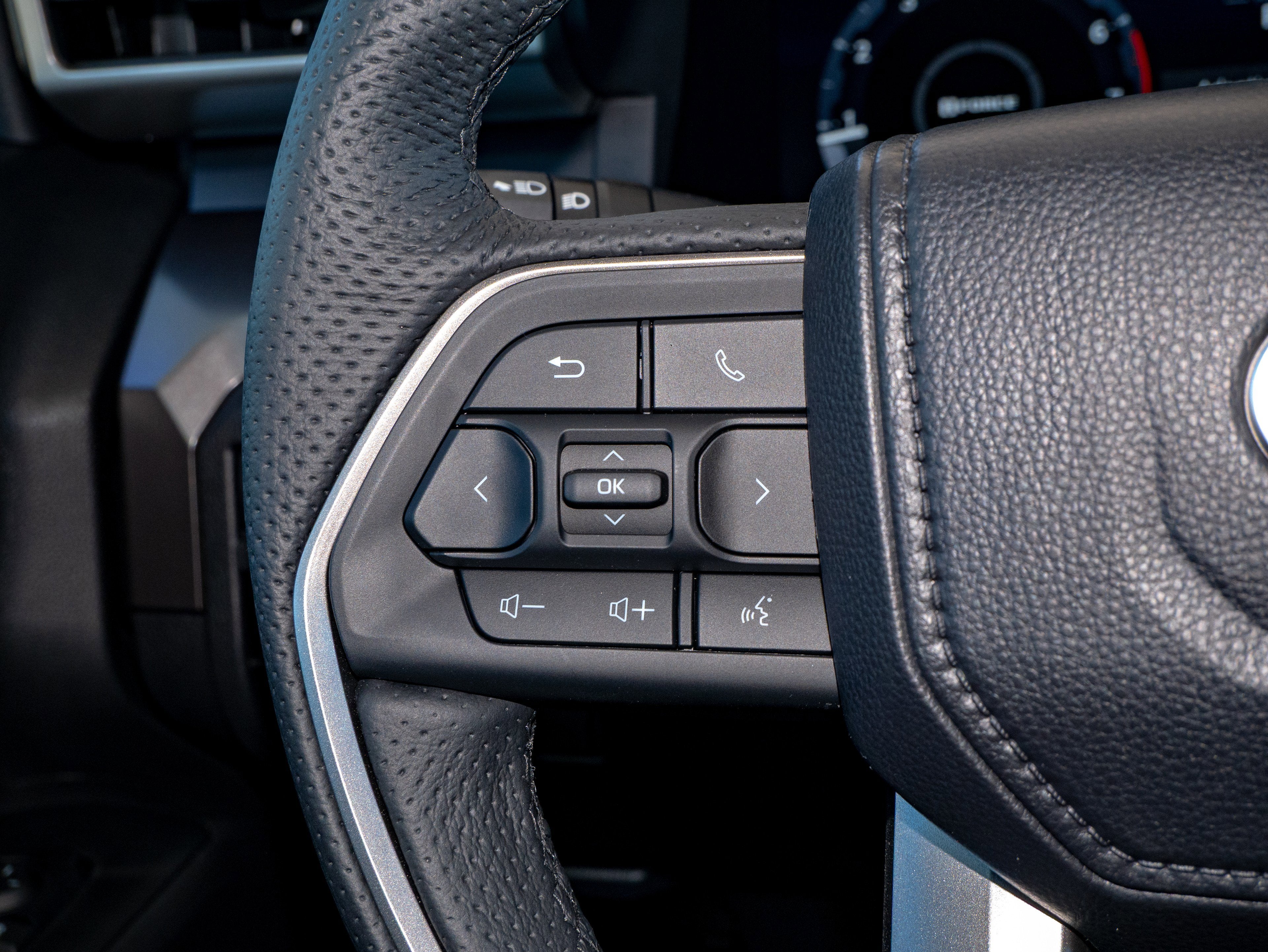 • Leather-trimmed manual tilt/telescopic steering wheel with phone, audio, display/infotainment, and Driver Assist controls