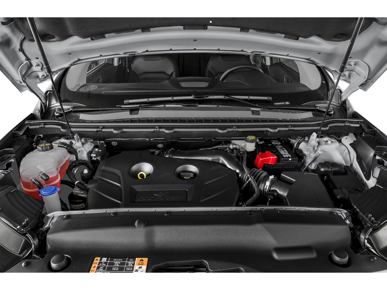 3.16 Axle Ratio, 4-Wheel Disc Brakes, 6 Speakers, ABS brakes, Air Conditioning, Alloy wheels, AM/FM radio: SiriusXM, AM/FM Stereo w/Single CD, Auto-dimming Rear-View mirror, Automatic temperature control, Brake assist, Bumpers: body-color, CD player, Compass, Delay-off headlights, Driver door bin, Driver vanity mirror, Dual front impact airbags, Dual front side impact airbags, Electronic Stability Control, Emergency communication system, Exterior Parking Camera Rear, Four wheel independent suspension, Front anti-roll bar, Front Bucket Seats, Front Center Armrest w/Storage, Front dual zone A/C, Front reading lights, Fully automatic headlights, Heated door mirrors, Illuminated entry, Knee airbag, Leather Shift Knob, Low tire pressure warning, Occupant sensing airbag, Outside temperature display, Overhead airbag, Overhead console, Panic alarm, Passenger door bin, Passenger vanity mirror, Power door mirrors, Power driver seat, Power steering, Power windows, Rear anti-roll bar, Rear Parking Sensors, Rear reading lights, Rear seat center armrest, Rear window defroster, Rear window wiper, Remote keyless entry, SiriusXM Radio, Speed control, Speed-Sensitive Wipers, Split folding rear seat, Spoiler, Steering wheel mounted audio controls, SYNC, Tachometer, Telescoping steering wheel, Tilt steering wheel, Traction control, Trip computer, Turn signal indicator mirrors, Unique Cloth Bucket Seats, Variably intermittent wipers, Wheels: 18" Aluminum Painted Sparkle Silver.
