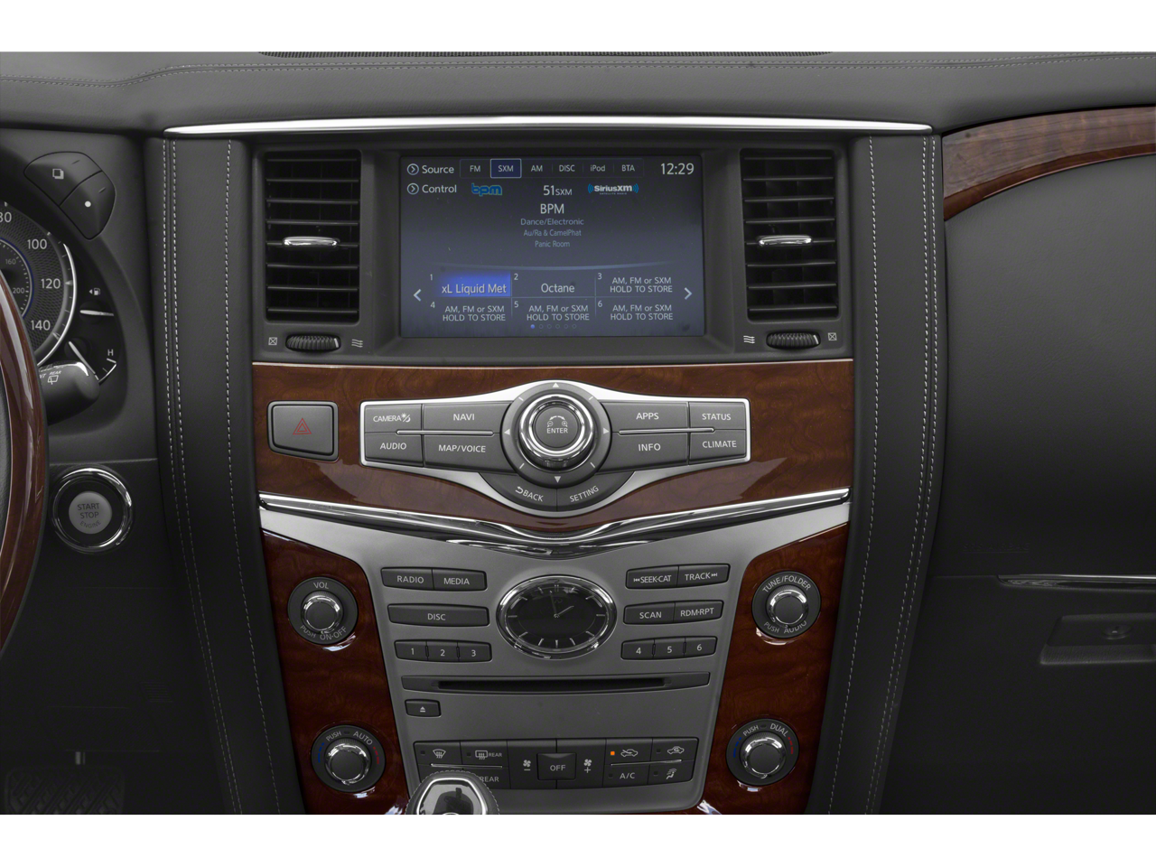 *ALUMINUM ALLOY WHEELS*, *APPLE CARPLAY/ANDROID AUTO*, *BACKUP CAMERA*, Americas Best Warranty 10yr/100k miles, Hyundai Roadside Assistance 5yr/Unlimited miles, 13 Speakers, 2.94 Axle Ratio, 3rd row seats: split-bench, 4-Wheel Disc Brakes, ABS brakes, Activation Disclaimer, Air Conditioning, Alloy wheels, AM/FM radio: SiriusXM, Anti-whiplash front head restraints, Auto High-beam Headlights, Auto tilt-away steering wheel, Auto-dimming door mirrors, Auto-dimming Rear-View mirror, Auto-leveling suspension, Automatic temperature control, Backup Collision Intervention (BCI), Blind Spot Intervention (BSI), Blind Spot Warning, Brake assist, Bumpers: body-color, Carpeted Cargo Mat/Cargo Net & First Aid Kit, CD player, Delay-off headlights, Driver Assistance Package, Driver door bin, Driver vanity mirror, Dual front impact airbags, Dual front side impact airbags, Electronic Stability Control, Emergency communication system: INFINITI Connection, Four wheel independent suspension, Front anti-roll bar, Front Bucket Seats, Front Center Armrest, Front dual zone A/C, Front fog lights, Front reading lights, Fully automatic headlights, Garage door transmitter: HomeLink, Genuine wood console insert, Genuine wood dashboard insert, Genuine wood door panel insert, Heated door mirrors, Heated Front Bucket Seats, Heated front seats, Heated steering wheel, Illuminated entry, INFINITI Radiant Illuminated Kick Plates, Intelligent Cruise Control (Full-Speed Range), Lane Departure Warning System, Leather Shift Knob, Leather steering wheel, Leather-Appointed Seats w/Stratford Burl Trim, Literature Kit, Low tire pressure warning, Memory seat, Navigation System, Occupant sensing airbag, Outside temperature display, Overhead airbag, Overhead console, Panic alarm, Passenger door bin, Passenger vanity mirror, Power door mirrors, Power driver seat, Power Liftgate, Power moonroof, Power passenger seat, Power steering, Power windows, Radio data system, Radio: AM/FM/HD Single In-Dash CD/DVD Player w/MP3, Rain sensing wipers, Rear air conditioning, Rear anti-roll bar, Rear audio controls, Rear reading lights, Rear seat center armrest, Rear window defroster, Rear window wiper, Reclining 3rd row seat, Remote keyless entry, Roof rack: rails only, Roof Rail Crossbars, Security system, Speed control, Speed-sensing steering, Split Bench Seat Package, Split folding rear seat, Spoiler, Steering wheel memory, Steering wheel mounted audio controls, Tachometer, Telescoping steering wheel, Tilt steering wheel, Traction control, Trip computer, Turn signal indicator mirrors, Variably intermittent wipers, Voltmeter, Wheels: 20" x 8.0" Split 6-Spoke Aluminum-Alloy.