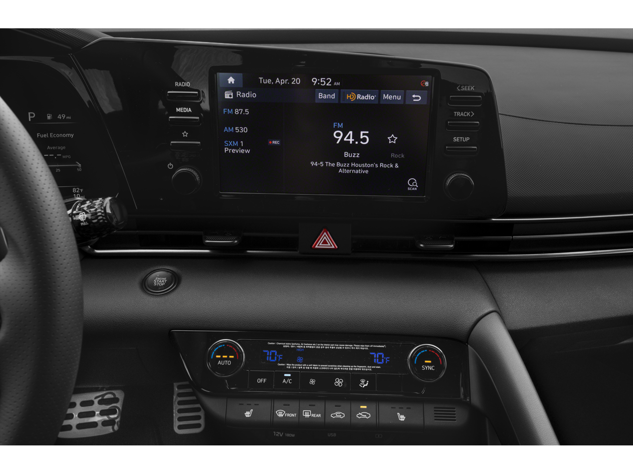 - Radio: AM/FM/HD/SiriusXM Display Audio -inc: 8" high resolution touch screen display, 6 speakers, wireless Apple CarPlay & Android Auto, Bluetooth® hands-free phone system w/voice recognition, dual USB ports, wireless device charging, speed-sensitive automatic volume control and Blue Link connected care