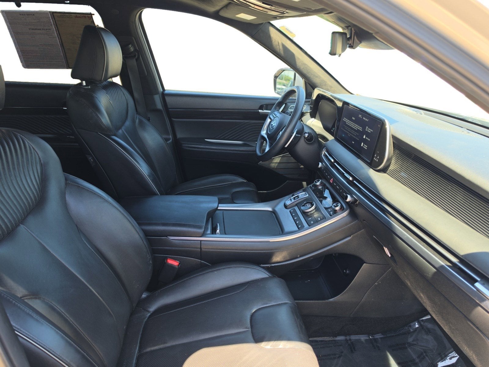 CARFAX One-Owner. Typhoon Silver 2023 Hyundai Palisade Calligraphy FWD 8-Speed Automatic with SHIFTRONIC V6 Americas Best Warranty 10yr/100k miles, Hyundai Roadside Assistance 5yr/Unlimited miles, 12 Speakers, 3.510 Axle Ratio, 3rd row seats: split-bench, 4-Wheel Disc Brakes, ABS brakes, Air Conditioning, Alloy wheels, AM/FM radio: SiriusXM, Apple CarPlay & Android Auto, Auto High-beam Headlights, Auto-dimming door mirrors, Auto-dimming Rear-View mirror, Auto-leveling suspension, Automatic temperature control, Brake assist, Bumpers: body-color, Cargo Net, Carpeted Floor Mats, Compass, Delay-off headlights, Driver door bin, Driver vanity mirror, Dual front impact airbags, Dual front side impact airbags, Electronic Stability Control, Emergency communication system: Blue Link Connected Car Service (3-year complimentary subscription), Exterior Parking Camera Rear, Four wheel independent suspension, Front anti-roll bar, Front Bucket Seats, Front Center Armrest, Front dual zone A/C, Front reading lights, Fully automatic headlights, Garage door transmitter: HomeLink, harman/kardon® Speakers, Heads-Up Display, Heated & Ventilated Front Bucket Seats, Heated door mirrors, Heated front seats, Heated rear seats, Heated steering wheel, Illuminated entry, Knee airbag, Low tire pressure warning, Memory seat, Navigation System, Occupant sensing airbag, Option Group 01, Outside temperature display, Overhead airbag, Overhead console, Panic alarm, Passenger door bin, Passenger vanity mirror, Power door mirrors, Power driver seat, Power Liftgate, Power moonroof, Power passenger seat, Power steering, Power windows, Premium Nappa Leather Seat Trim, Radio data system, Radio: AM/FM/MP3 Premium Audio System, Rain sensing wipers, Rear air conditioning, Rear anti-roll bar, Rear audio controls, Rear Bumper Applique, Rear reading lights, Rear side impact airbag, Rear window defroster, Rear window wiper, Reclining 3rd row seat, Remote keyless entry, Security system, Speed control, Speed-sensing steering, Split folding rear seat, Spoiler, Steering wheel mounted audio controls, Tachometer, Telescoping steering wheel, Tilt steering wheel, Traction control, Trip computer, Turn signal indicator mirrors, Variably intermittent wipers, Ventilated front seats, Ventilated rear seats, Wheels: 20" x 7.5J Calligraphy Exclusive Alloy.