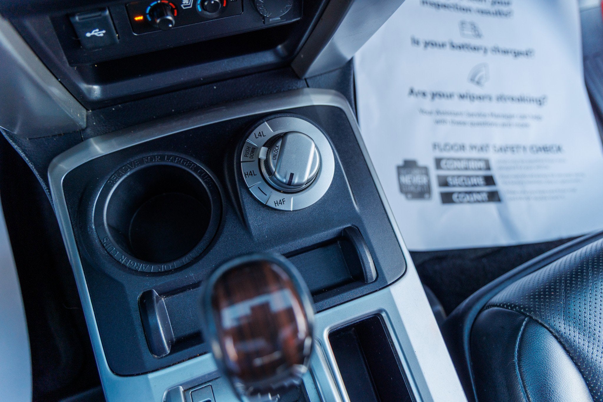 - Gearshifter material Leather and simulated wood gear shifter material
