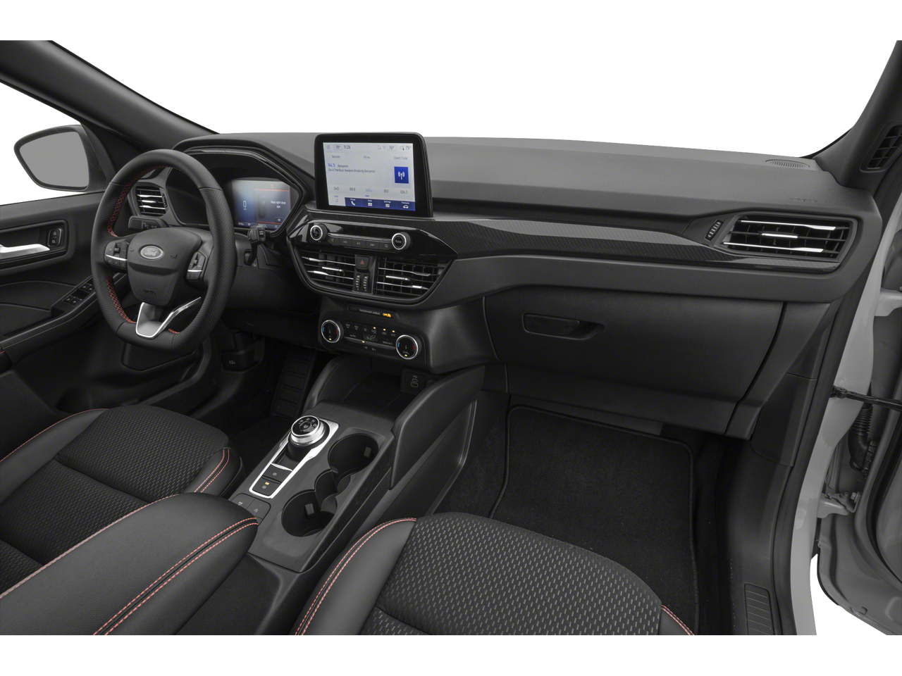 FRONT LICENSE PLATE BRACKET, EQUIPMENT GROUP 300A, ENGINE: 1.5L ECOBOOST, EBONY, VINYL/CLOTH FRONT SPORT CONTOUR BUCKET SEATS, Wing Spoiler, Wheels: 18" Rock Metallic Painted Aluminum, Vinyl/Cloth Front Sport Contour Bucket Seats -inc: 8-way power driver seat (includes fore/aft, up/down, power lumbar and power recline), 4-way manual front passenger seat (fore/aft w/manual recline) and red stitching, Valet Function, Trip Computer, Transmission: 8-Speed Automatic.