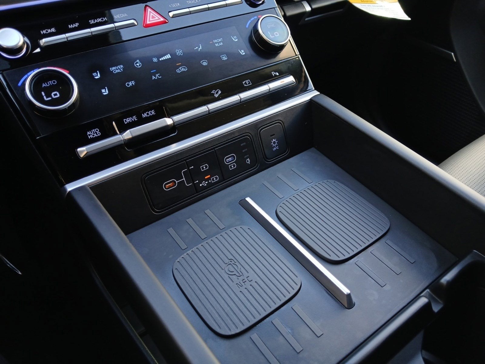 - Radio: AM/FM/HD Bose Premium Audio System -inc: 12 speakers including subwoofer, external amplifier, 12.3" wide touchscreen, Apple CarPlay and Android Auto, Bluetooth® hands-free w/wireless audio streaming, dynamic voice recognition, USB connectivity, SiriusXM, wifi hotspot, Blue Link connected car system, navigation system including traffic flow w/incident data via HD Radio (HERE), OTA updates (map only) and rear seat quiet mode